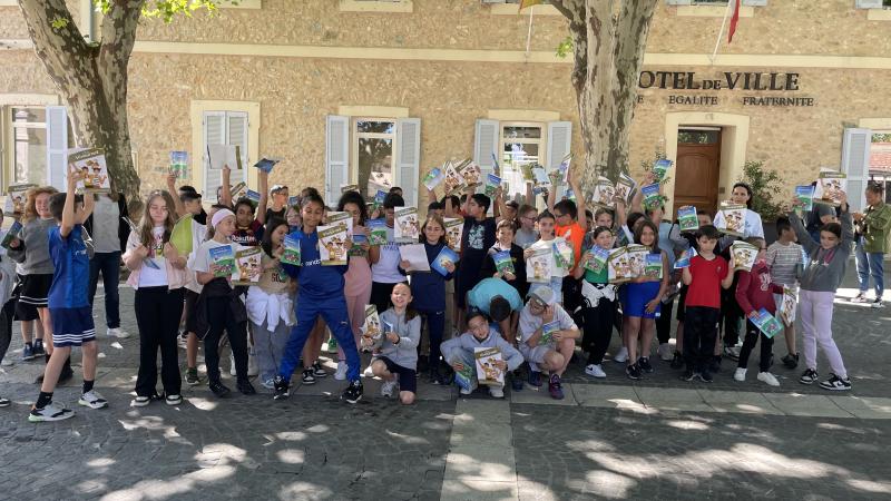 Des photos devant le fronton de l’Hôtel de Ville ont conclu la visite. Un ouvrage adapté aux enfants, intitulé « A la découverte de ta commune » leur a été remis.