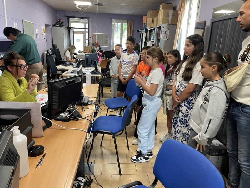 Ensuite, par petits groupes, les élèves ont visiter : le Guichet Unique (État-Civil, élections, funéraires, documents administratifs…), le CCAS (Centre communal d’action sociale), la Police municipale (avec les motos et les voitures qui ont remporté un franc succès), le service des Ressources humaines, le service Comptabilité, le Service communication (là où sont fabriqués Lou Vivournet et le P’tit Vivournet).