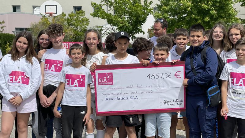 Tout au long de l'année scolaire, de nombreuses initiatives solidaires rythment la vie des collégiens. Celle de l'année dernière, dédiée à ELA, menée par les 5ème 4 sous l'égide de Mme Jessica Dubois, professeure de sport, en a été un bel exemple. La somme record de 1857€37 a été récoltée et remise officiellement aux représentants de ELA, le mercredi 17 mai, après une matinée pleine d'activités sportives, culturelles et solidaires.
